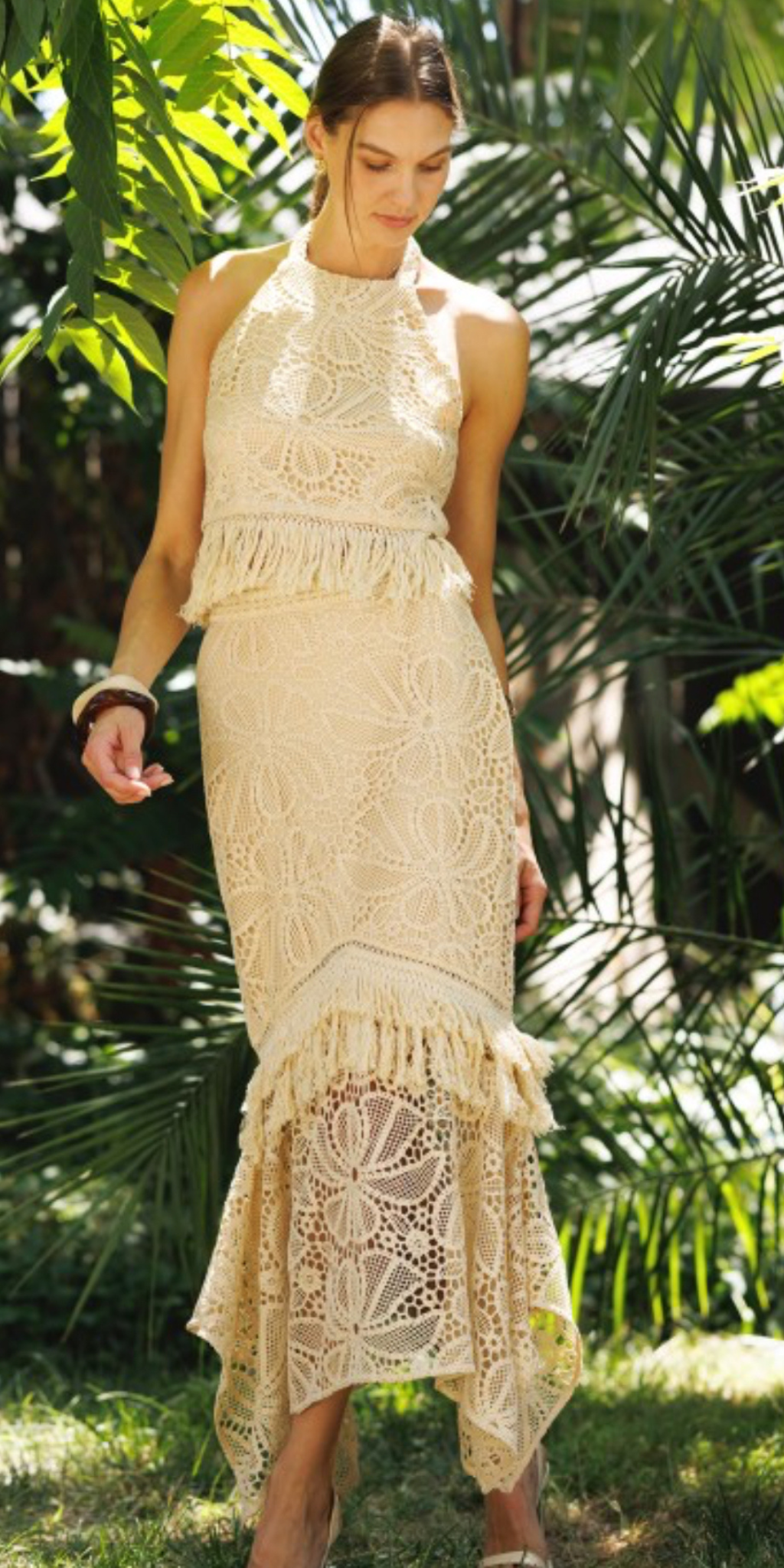 Halter crochet and fringe top and matching skirt. Perfect for a beach get-away.